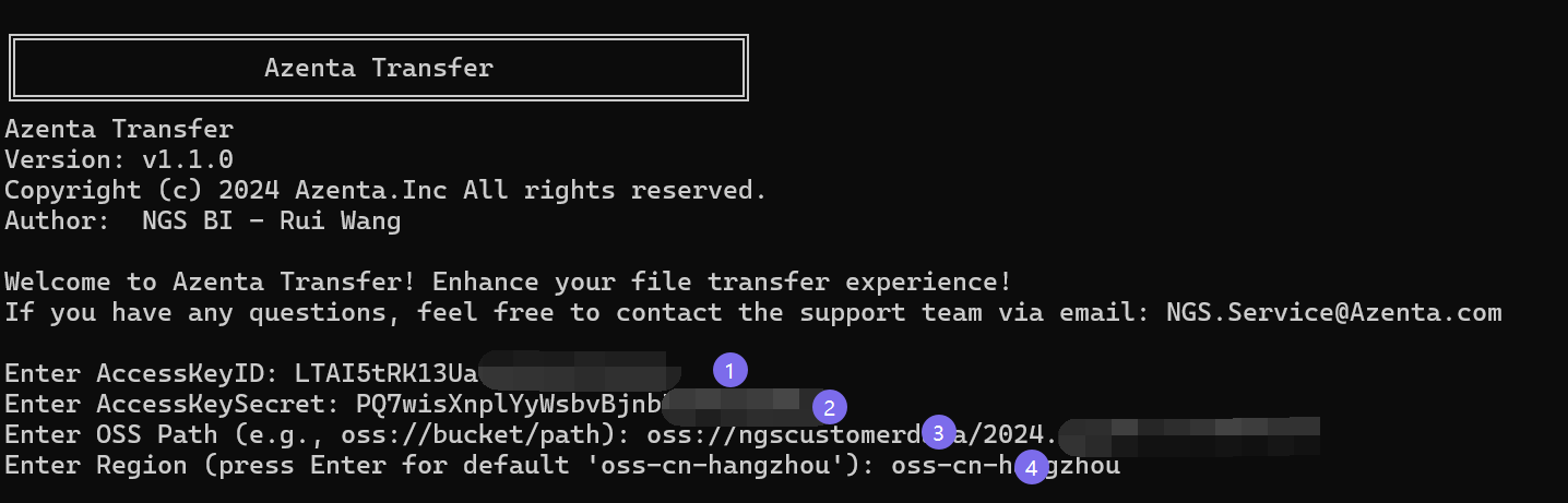 AzentaTransfer支持两种登录方式,推荐使用TransferCode登录方式,快捷方便,AccessKey登录方式需要配置AccessKeyId、AccessKeySecret、OSS路径、区域,详情请展开下方折叠。