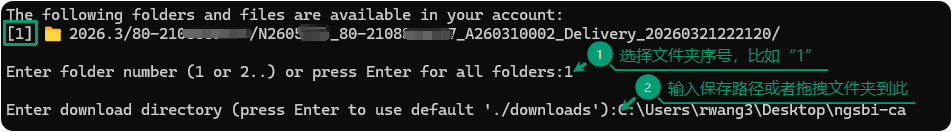 - 您可以通过输入对应序号(如:1 或 2 ...)来选择特定文件夹或文件。